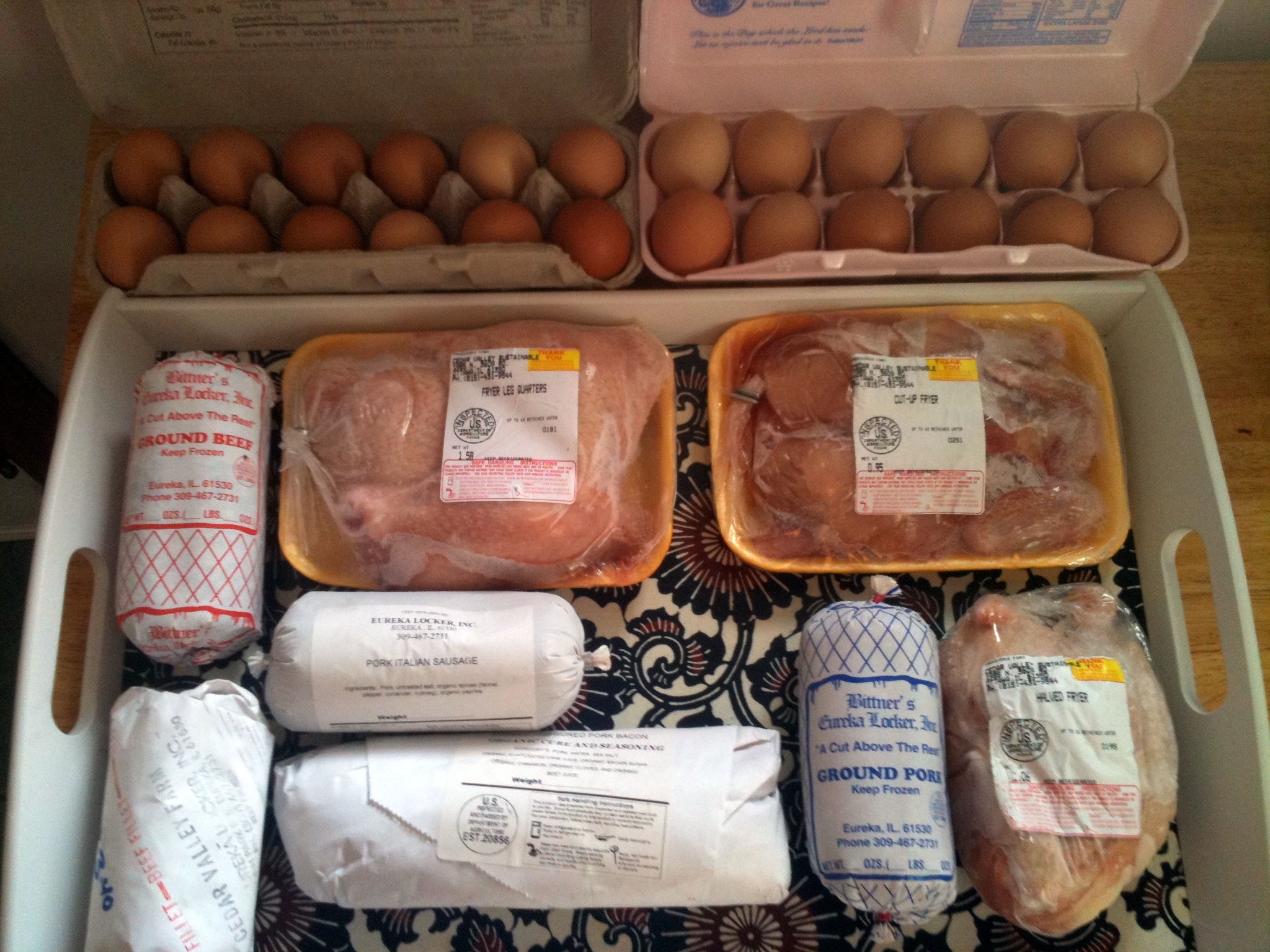 I picked up our second CSA meat share from Cedar Valley Sustainable Farm (see our first share here).  In terms of quantity, it’s a little less than the first meatload, but the retail value is probably comparable because this share includes steak and bacon.