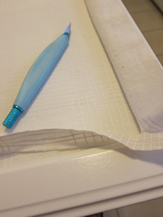 The next day, after it had dried, I used my X-Acto knife to cut off the extra fabric. Very easy and much more precise than if I had measured it. I’m pleased with the result, especially since it didn’t cost anything.