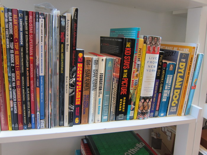 8. thanks dudes! i’d like to point out that, amongst the nerd books are a “picture book of saints” and an illustrated “animals of the bible”…