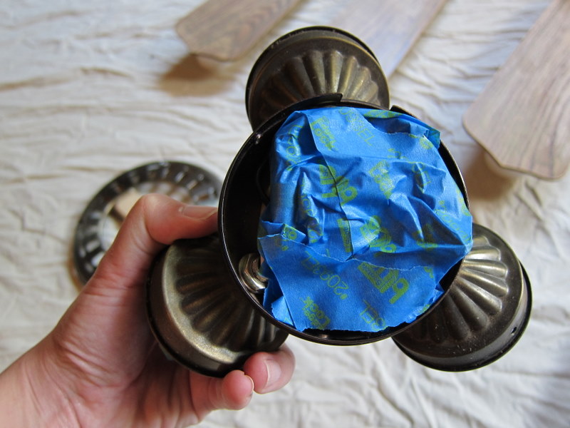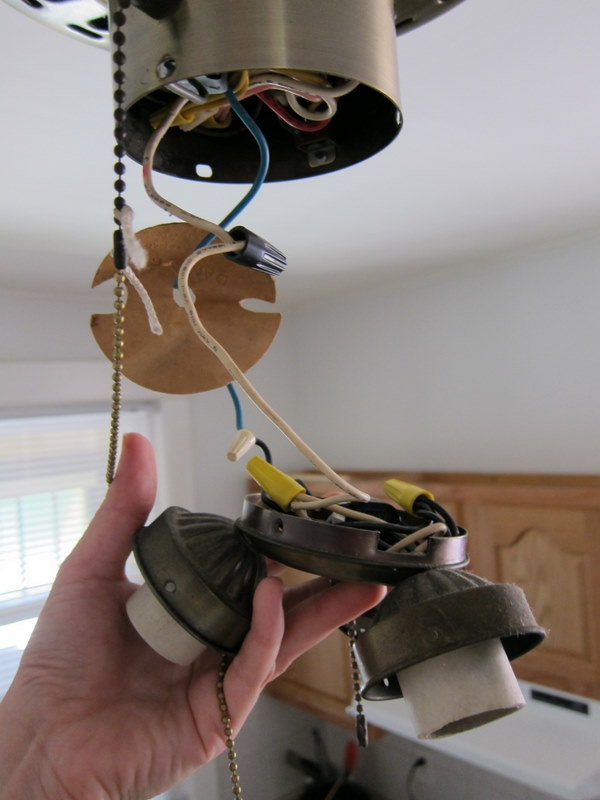 I started by removing the light bulbs and shades, and then the fan blades.