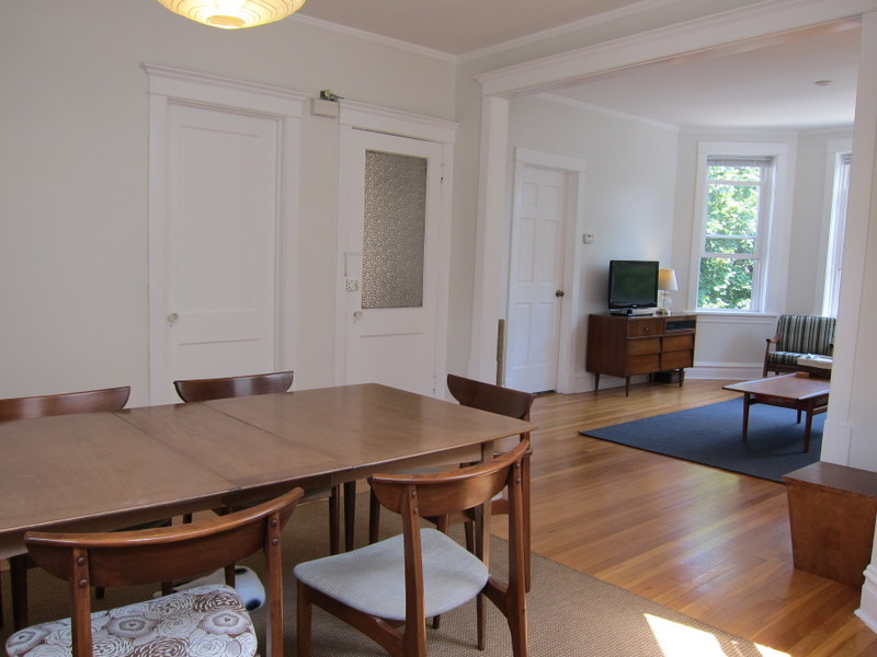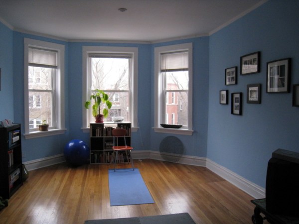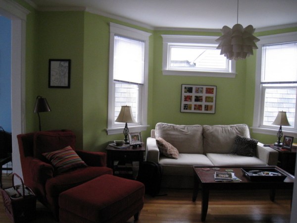 My favorite sort of project is one that I can tackle within a few days with little-to-no money spent. Our living room and dining room will not be that sort of project, but I’m looking forward to it all the same. Right now, it is a blank slate. It took some work getting it to this state – check out the wall colors before we moved in (please note: that’s the previous tenants’ stuff):