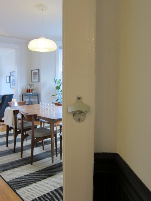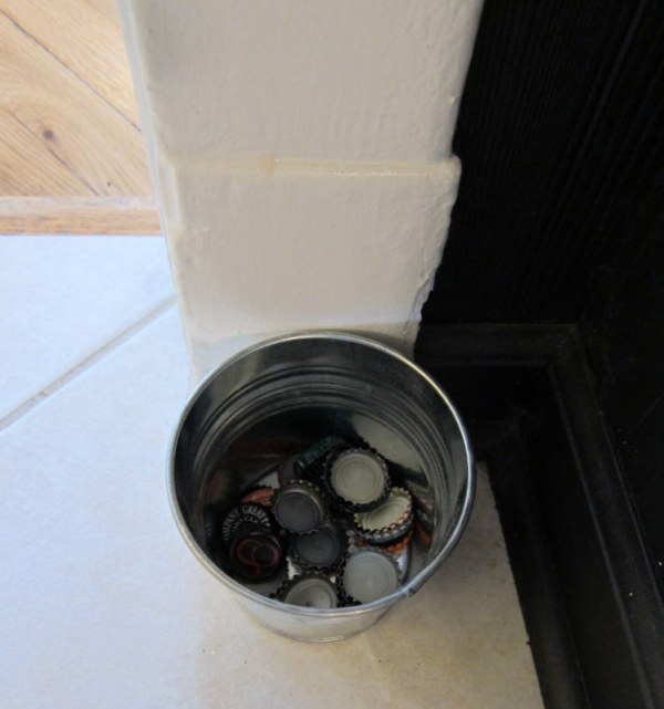 I’ll hang something below the bottle opener eventually, but for now the caps fall into a small pail.