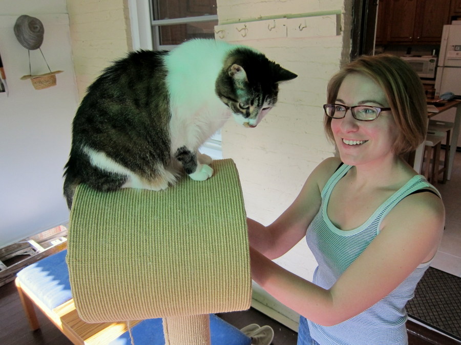 Other than bringing up the storage trunk and the rug from our basement, the biggest change I made was some cat… furniture? fittings? I have no idea what to call it. Cat stuff.