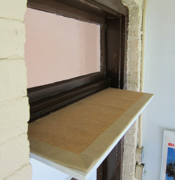 I added shelves for Doozy, as he likes to perch gargoyle-style, lording over us. I cut sisal rug remnants (leftover from the cat tree I built) to fit the shelves and glued them in place.