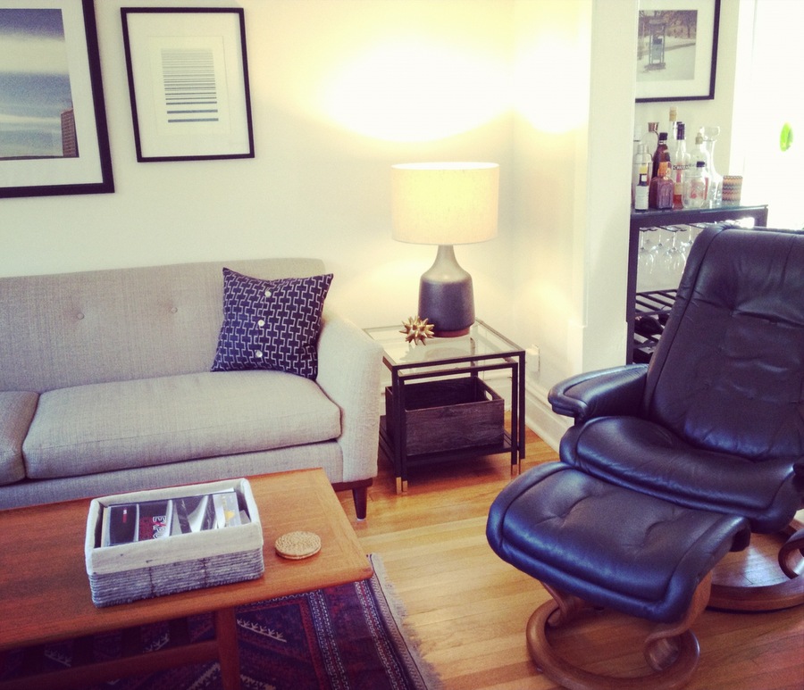 But let me back up: as with all things, I had very specific requirements in mind. I wanted a larger table for our lamp (West Elm’s Morten Table Lamp, which I scored for much cheaper via a floor model sale) and a smaller table for Jarrod to pull out to use next to his chair when we’re camped out in the living room for the evening. It had to be at least 18x18x18. It had to be metal and glass because we already have too much wood happening in there.