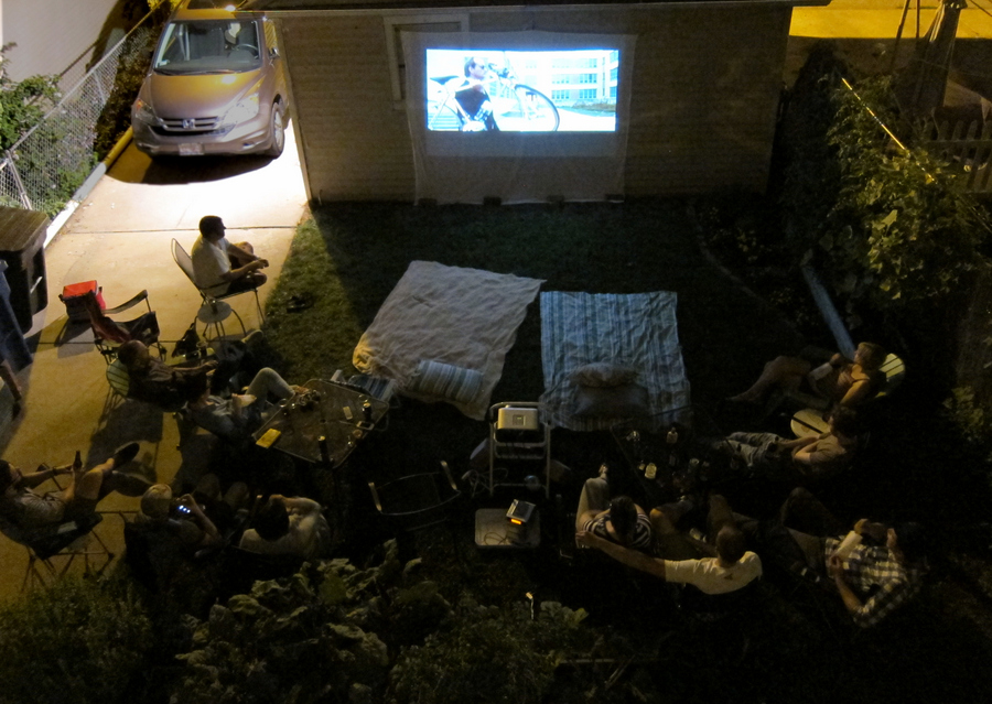 It was a Rushmore/Willy Wonka doubleheader.  The saturated colors, direct dialogue and minimal cussing of Rushmore worked well for this forum.  I had considered The Big Lebowski but nixed it due to the ferocity of expletives and the nearness of our neighbors. Also out of consideration for our neighbors, we lowered the volume on Willy Wonka and just had it playing in the background while people hung out and talked.