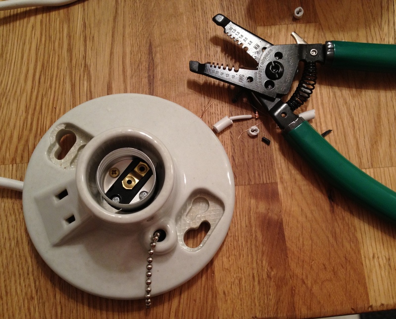 While cleaning out our closet this weekend I decided that cleaning out our closet would be nicer if there were a ceiling light in there. More often than not, mundane cleaning initiatives like this are waylaid by the allure of PROJECT! You know what’s not exciting? Cleaning. You know what is? Wire stripping!