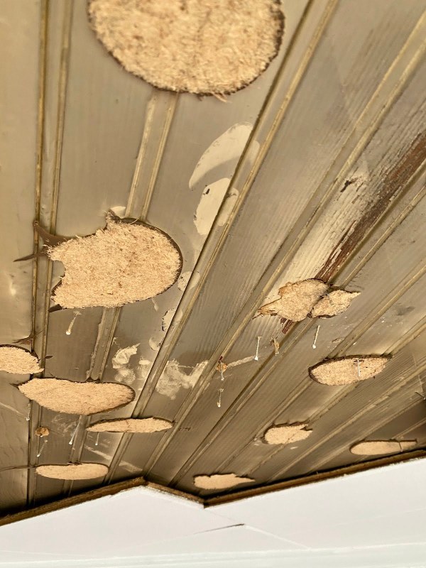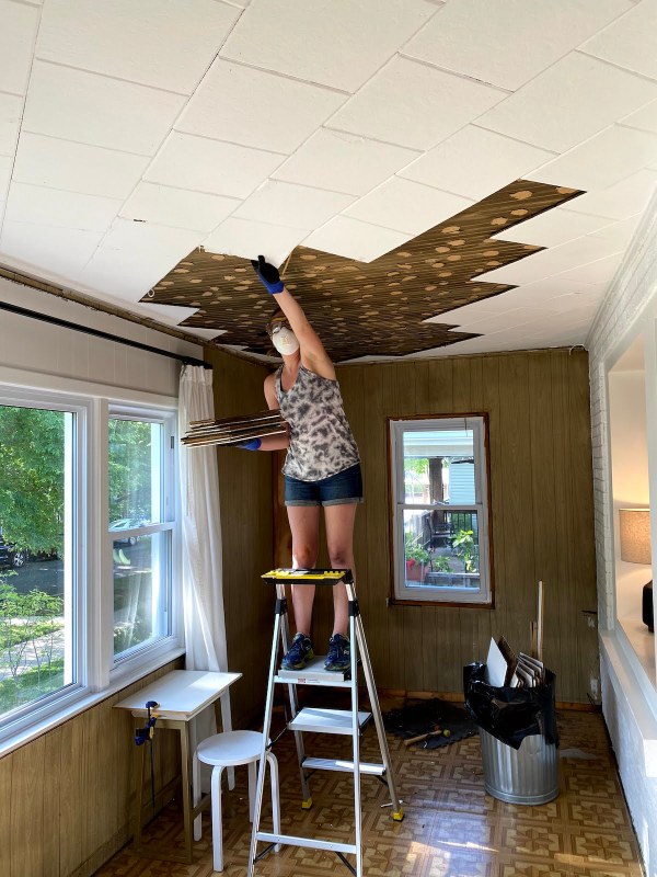 I chose not to attempt to salvage the original beadboard ceiling: it was full of nails and covered in construction adhesive.