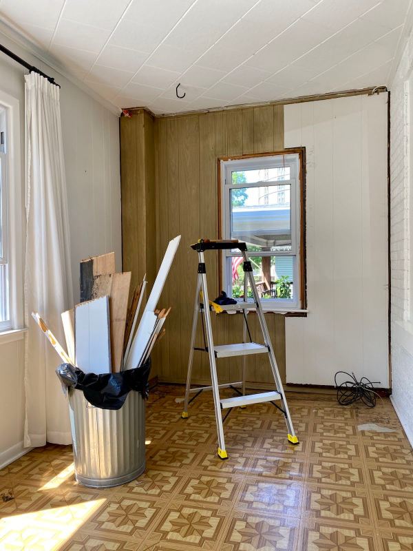 We chose to postpone the start of our project until Chicago entered Phase 3 of our COVID-19 reopening plan. It was go-time in June. A few days before the crew I arrived, I got to work on DIY demo. Emptying the sunroom reminded me how terribly proportioned the windows were for the space.