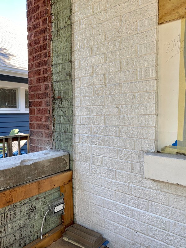 Banging in the header accidentally knocked out a chunk of our stucco, which they moved to the basement for safekeeping. The painter reaffixed it later.